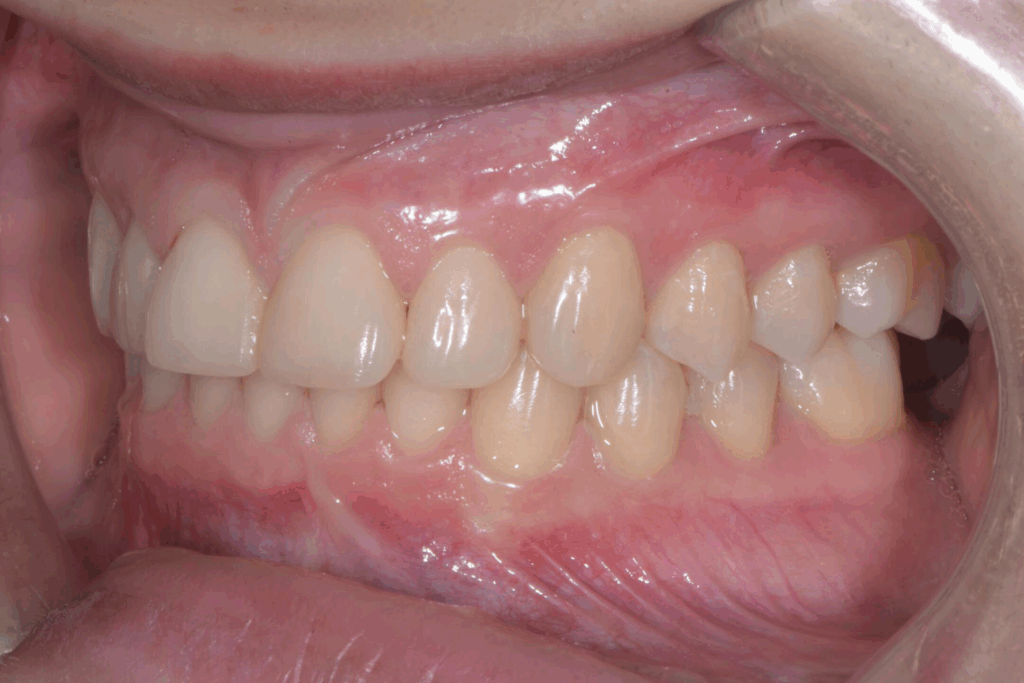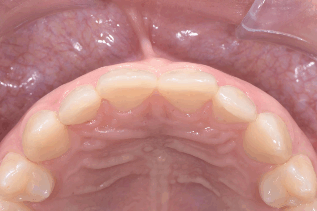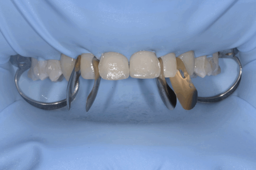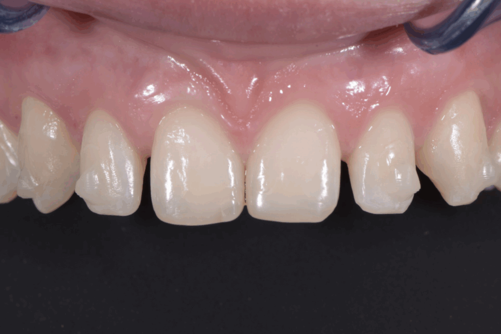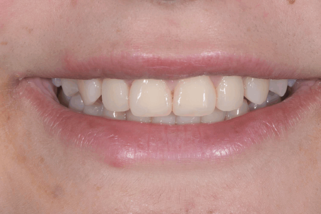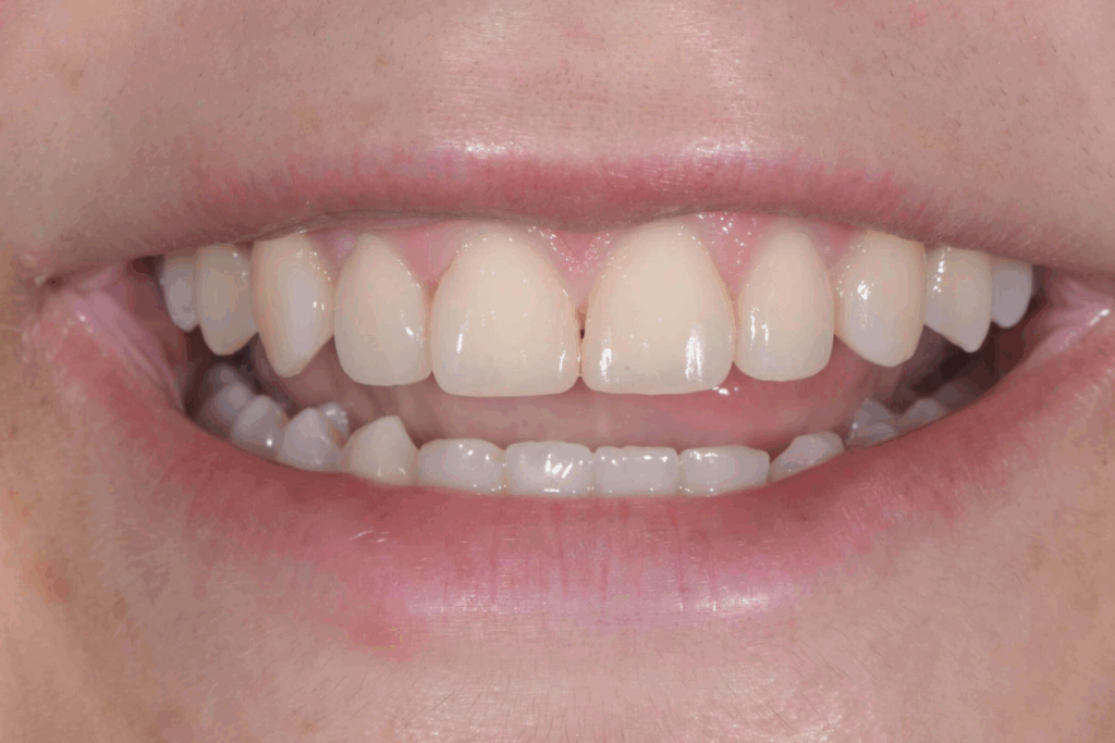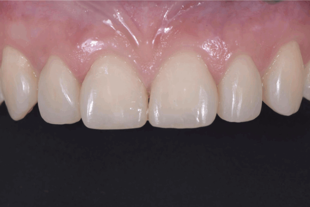 Una volta completata la fase ortodontica, siamo passati alla finalizzazione estetica degli incisivi superiori. Utilizzando la tecnica della ricostruzione in composito, abbiamo aumentato le dimensioni dei denti, migliorandone la forma e l’armonia con il resto del sorriso. Il composito, un materiale estetico e versatile, ci ha permesso di ottenere un risultato naturale e duraturo senza sacrificare la struttura dentale originale.