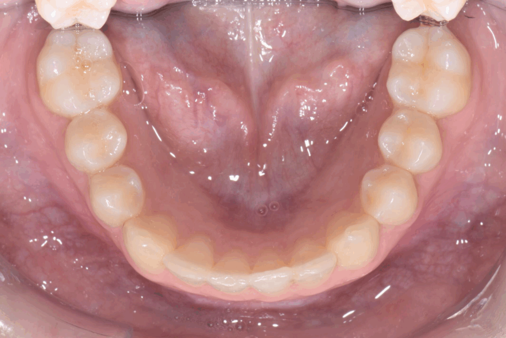 La prima fase del trattamento è stata un’analisi approfondita. Durante il check-up, abbiamo confermato la diagnosi di agenesia dei secondi molari permanenti inferiori, una condizione congenita che lascia spazi vuoti nell’arcata. Abbiamo inoltre rilevato che gli incisivi superiori erano di dimensioni ridotte rispetto al resto dei denti e che la paziente presentava un morso profondo, con gli incisivi superiori che coprivano eccessivamente quelli inferiori. Questa valutazione completa ci ha permesso di creare un piano di trattamento personalizzato e preciso, tenendo conto di tutte le problematiche presenti.